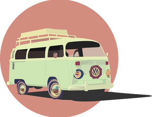 Illustration pour une ligne de vêtements et de produits représentant l'esprit de l'aventure et de la liberté sur la route. Avec un clin d’oeil au road trip Américan.